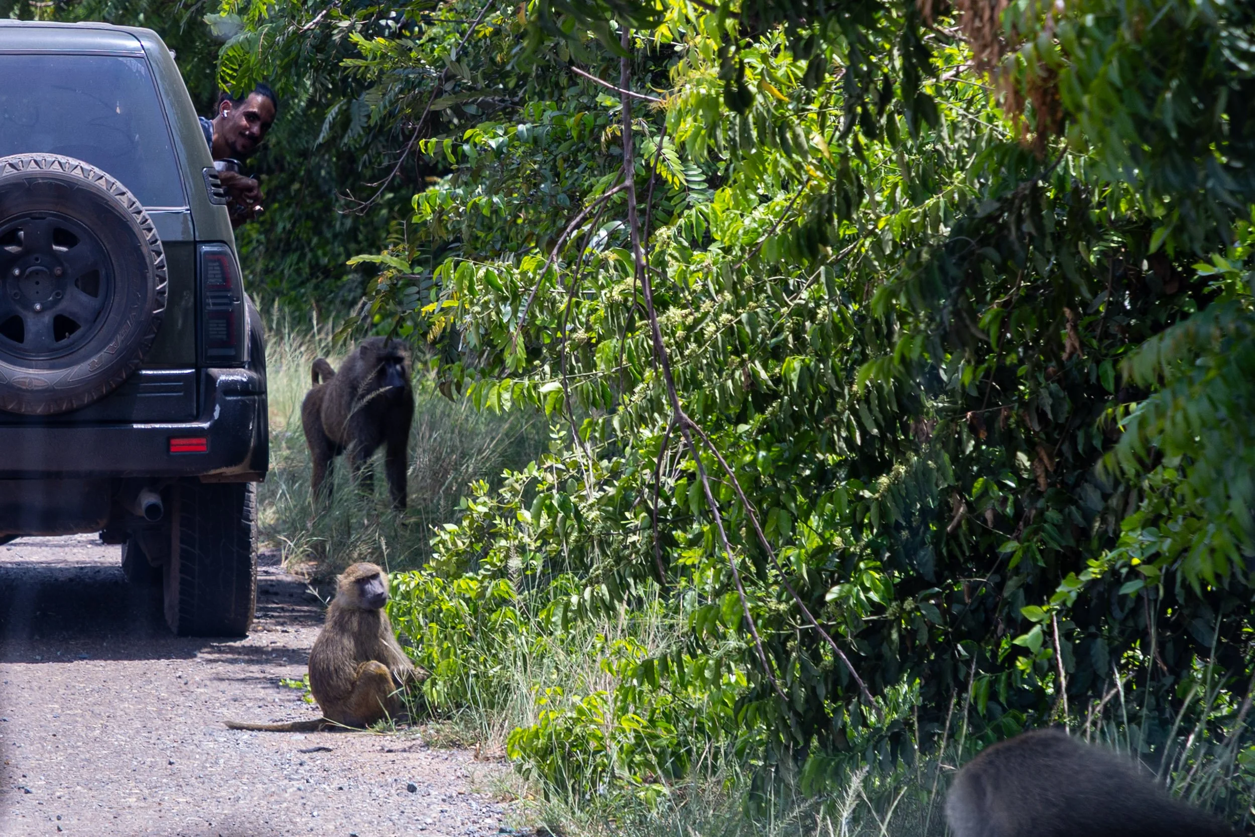 Don’t know why this guy has his head exposed to the baboons, I guess he knows he is safe.